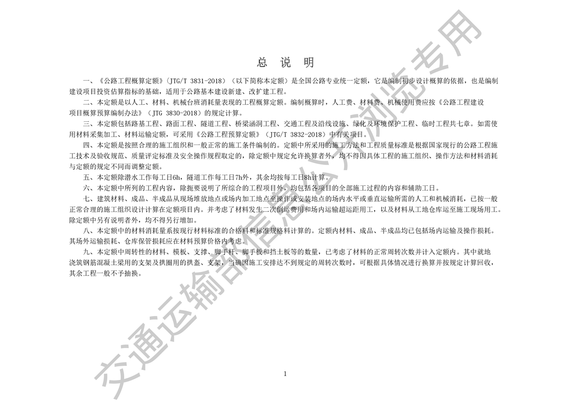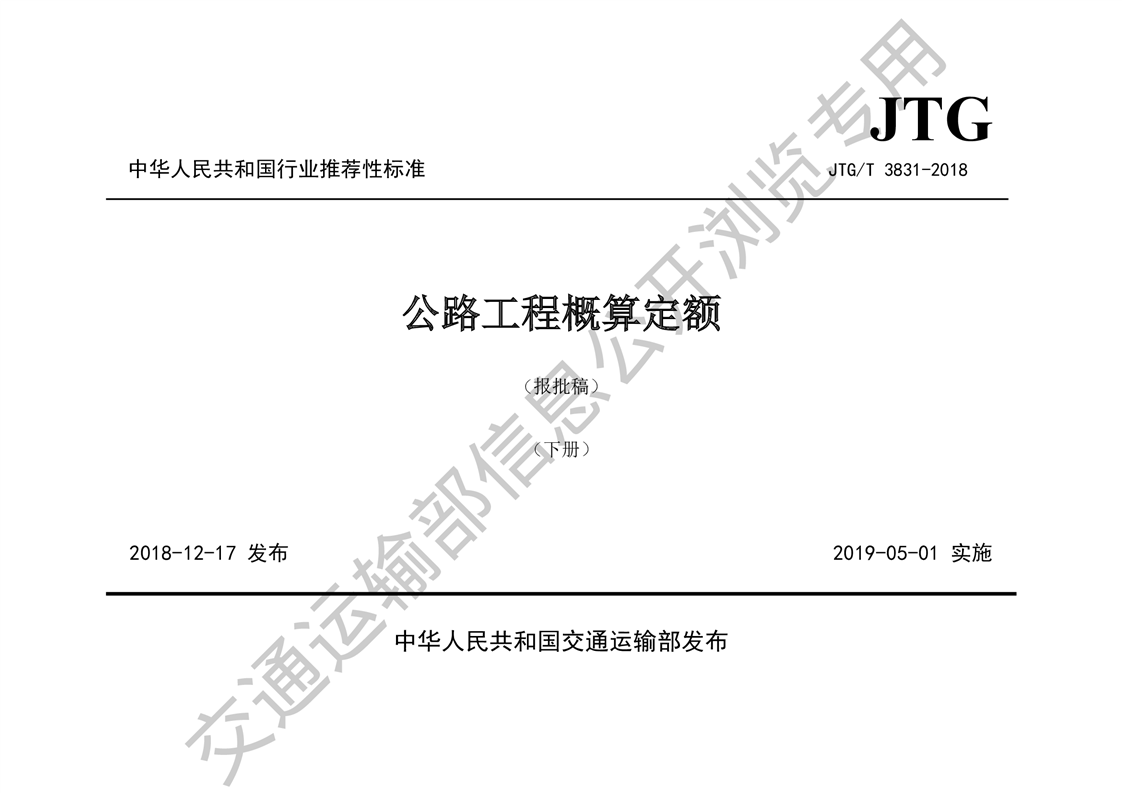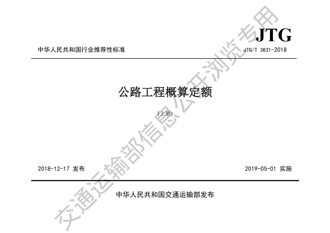 《公路工程概算定额》(JTG 3831-2018)