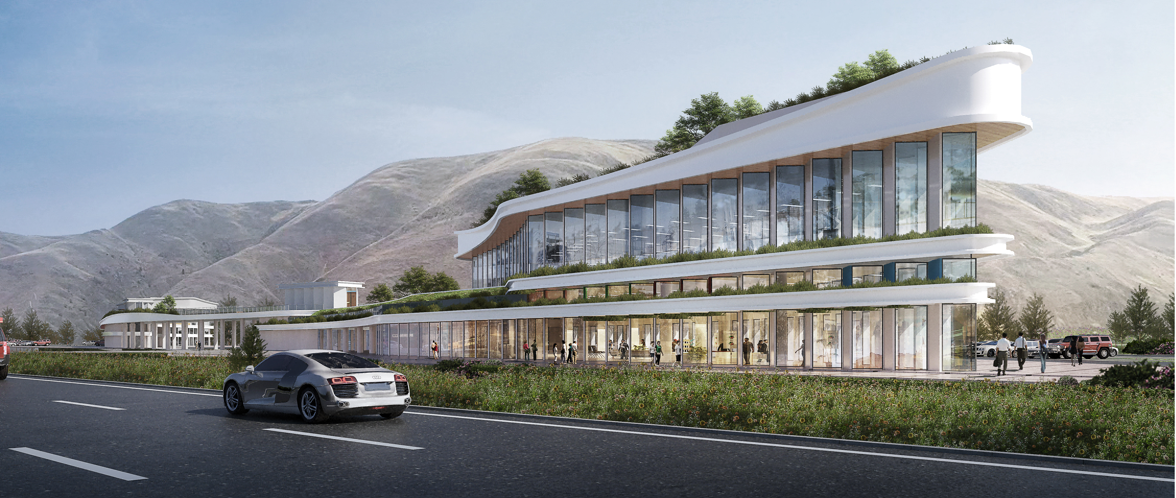 a) 主题服务区建筑风貌示意图(现代风格:甘孜州G318新都桥服务区)