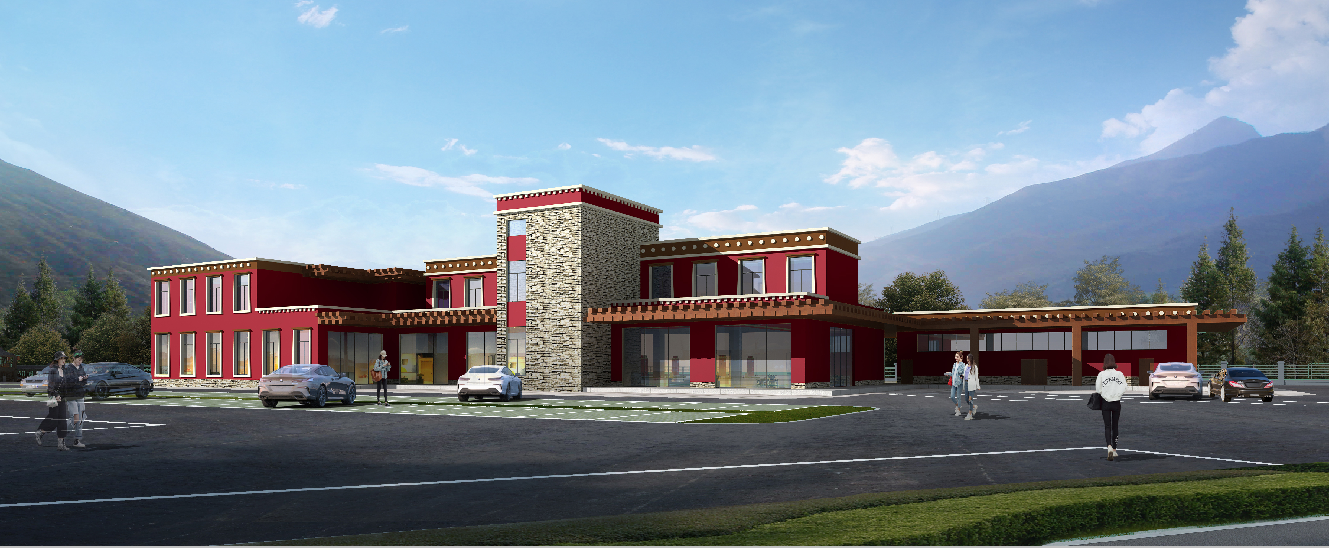 c)主题服务区建筑风貌示意图(藏羌风格:甘孜州G318竹巴龙服务区)