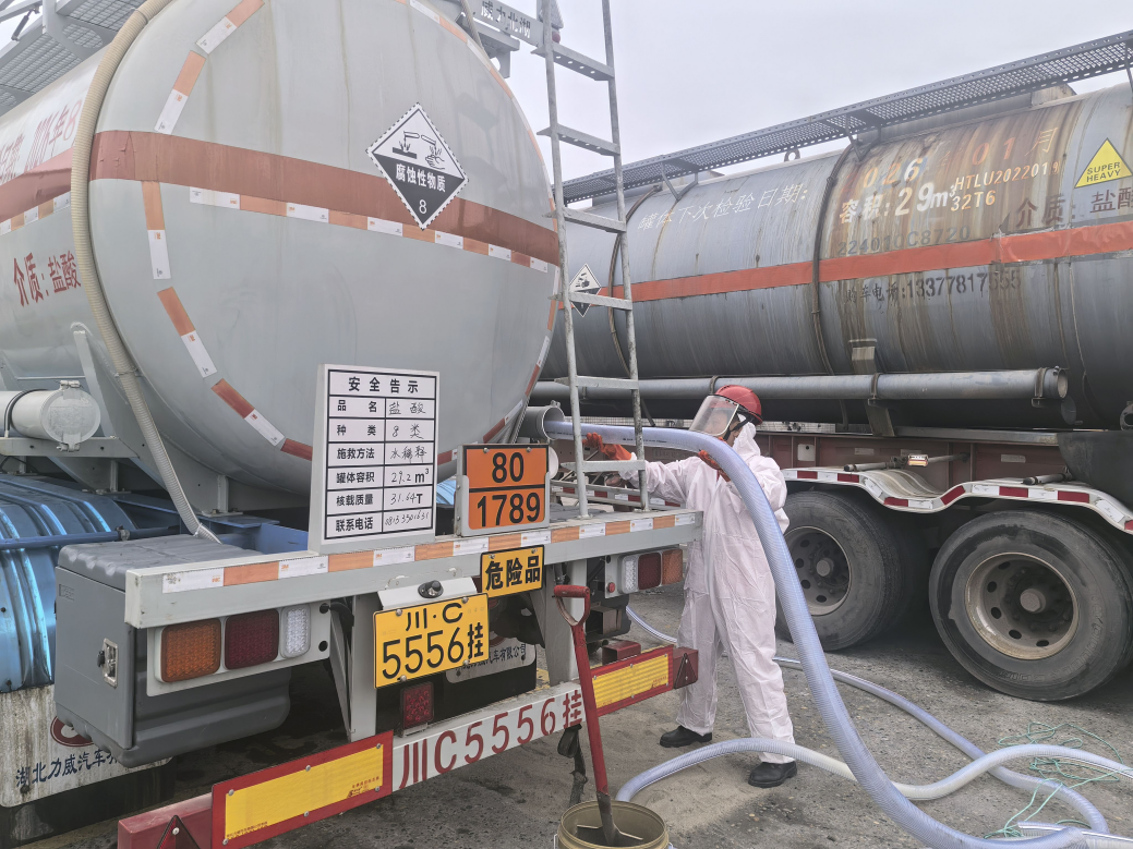 本次演练模拟了运输盐酸的车辆在停车场内发生自燃和泄漏的突发情况。事故发生后,企业迅速自救并上报,贡井区交通运输局立即启动应急预案,协调应急力量赶赴现场,共同处置险情。演练中,各救援单位反应迅速、配合紧密,完整演示了报警警戒、人员疏散、灭火堵漏、化学品中和处理等关键环节,过程紧张有序。