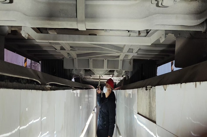 (在普安客运站,交通运输车辆例检人员认真开展始发客车安全检查工作,切实保障游客出行安全)