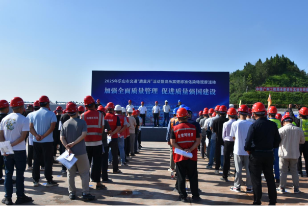 2025年9月24日,以“加强全面质量管理 促进质量强国建设”为主题的乐山市交通“质量月”活动暨资乐高速标准化梁场观摩会在中铁广州局集团有限公司资乐高速TJ5标2号梁场顺利举行。本次活动由乐山市交通运输局牵头组织,多家建设、施工及监理单位共同承办,吸引了来自全市交通系统及相关参建单位的百余名代表参与。