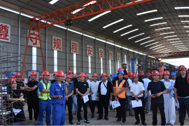 随后,参会人员进入资乐高速TJ5标2号梁场开展实地观摩。项目技术负责人详细介绍了工程建设进展与梁场规划布局。代表们依次走访了钢筋加工区、梁板预制区、存梁区及架设区,深入了解预制梁板在各施工环节的质量控制要点,并重点考察了可调节式台座、龙门吊双轨设计、循环压浆设备等“四新”技术应用情况。通过系统观摩,与会人员从整体规划、工艺细节与管理机制三方面,全面学习了标准化梁场的建设与运行经验。