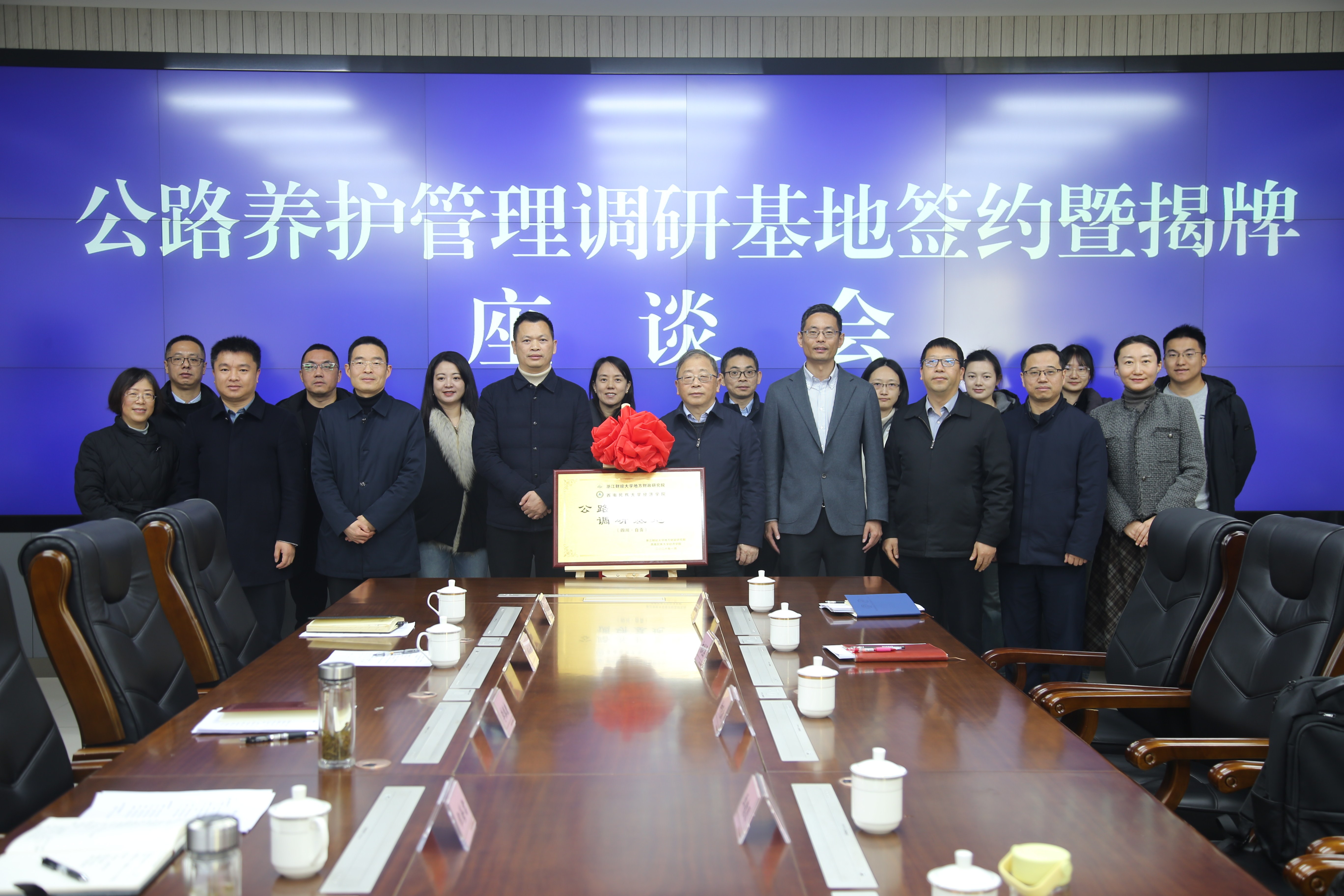 1月9日,浙江财经大学地方财政研究院、西南民族大学经济学院与自贡交通校地合作共建调研基地签约暨揭牌仪式在自贡市交通运输局举行。