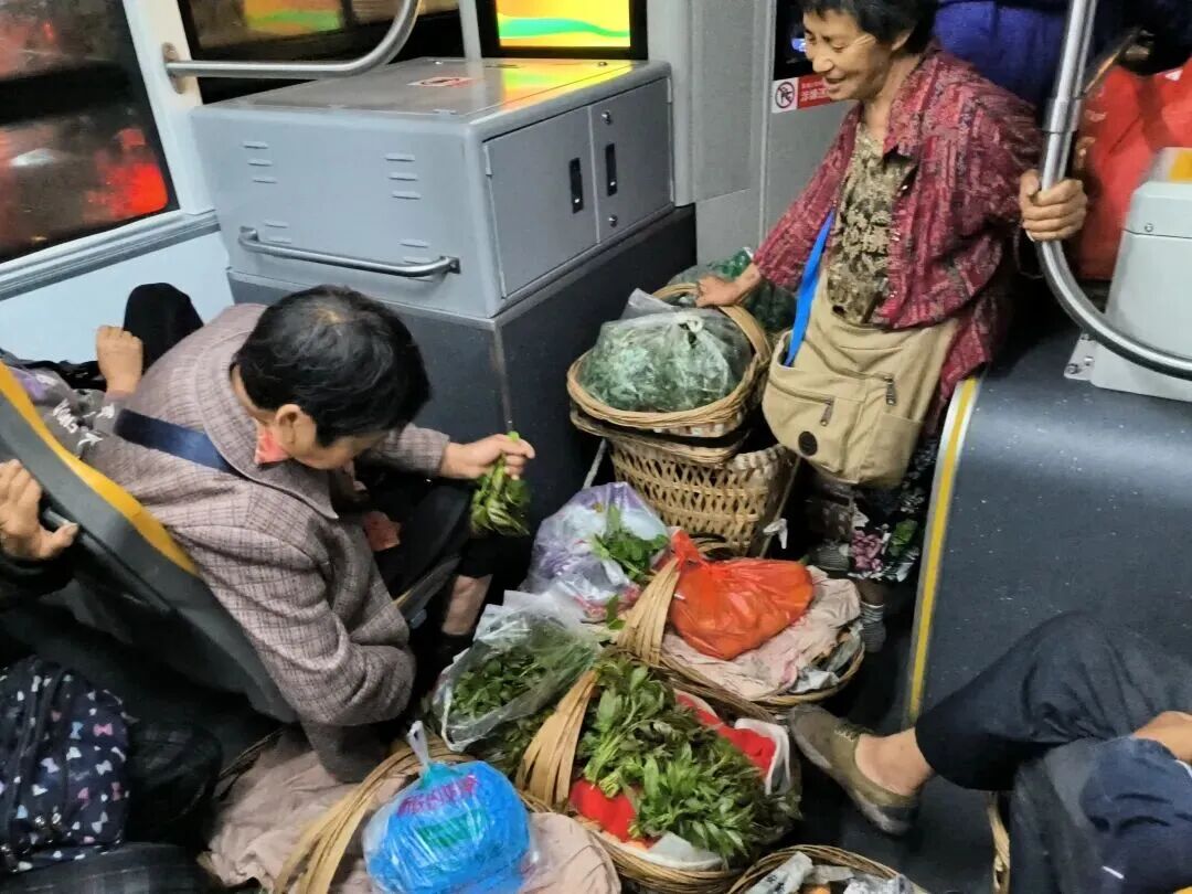 “我每次都坐T45路6点01分那班车进城,之前有时候还打挤,现在公交错开一分钟给我们发一趟‘专车’,菜筐筐直接放车子上多宽敞,这些年真是帮了我们大忙!”——太平街道菜农张大姐