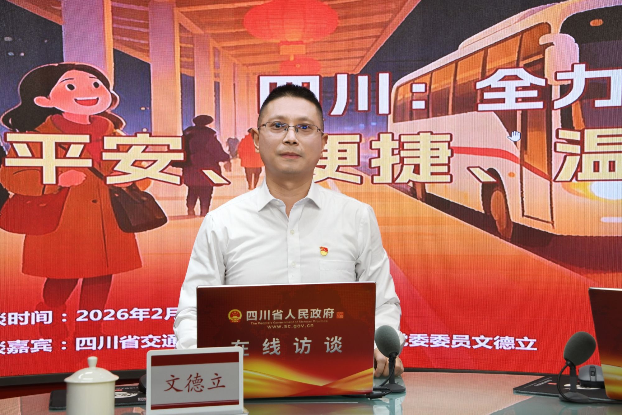 2026年春运是春节假期延长至9天后的第一个春运,自2月2日启动以来,四川道路春运总体呈现“总量略升、需求多元、压力集中”三大鲜明特征。2月11日,省政府网站在线访谈栏目邀请省交通运输厅道路运输管理局党委委员文德立走进直播间,围绕“全力打造‘平安、便捷、温馨’道路春运”主题与广大网友进行在线交流。