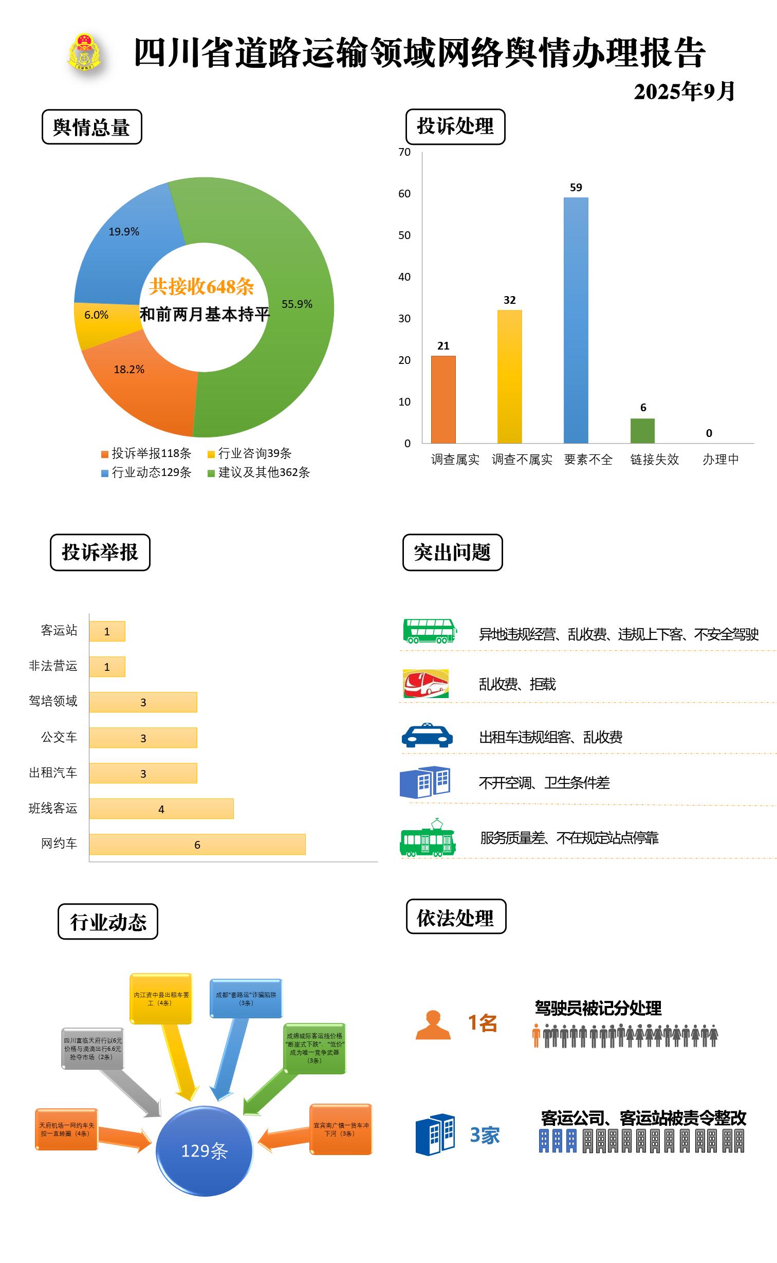 按照网络舆情办理工作的相关规定,厅运管局对近期道路运输领域网络舆情、省本级12328(12345)热线工单及信访件办理情况进行汇总分析,有关工作情况如下。