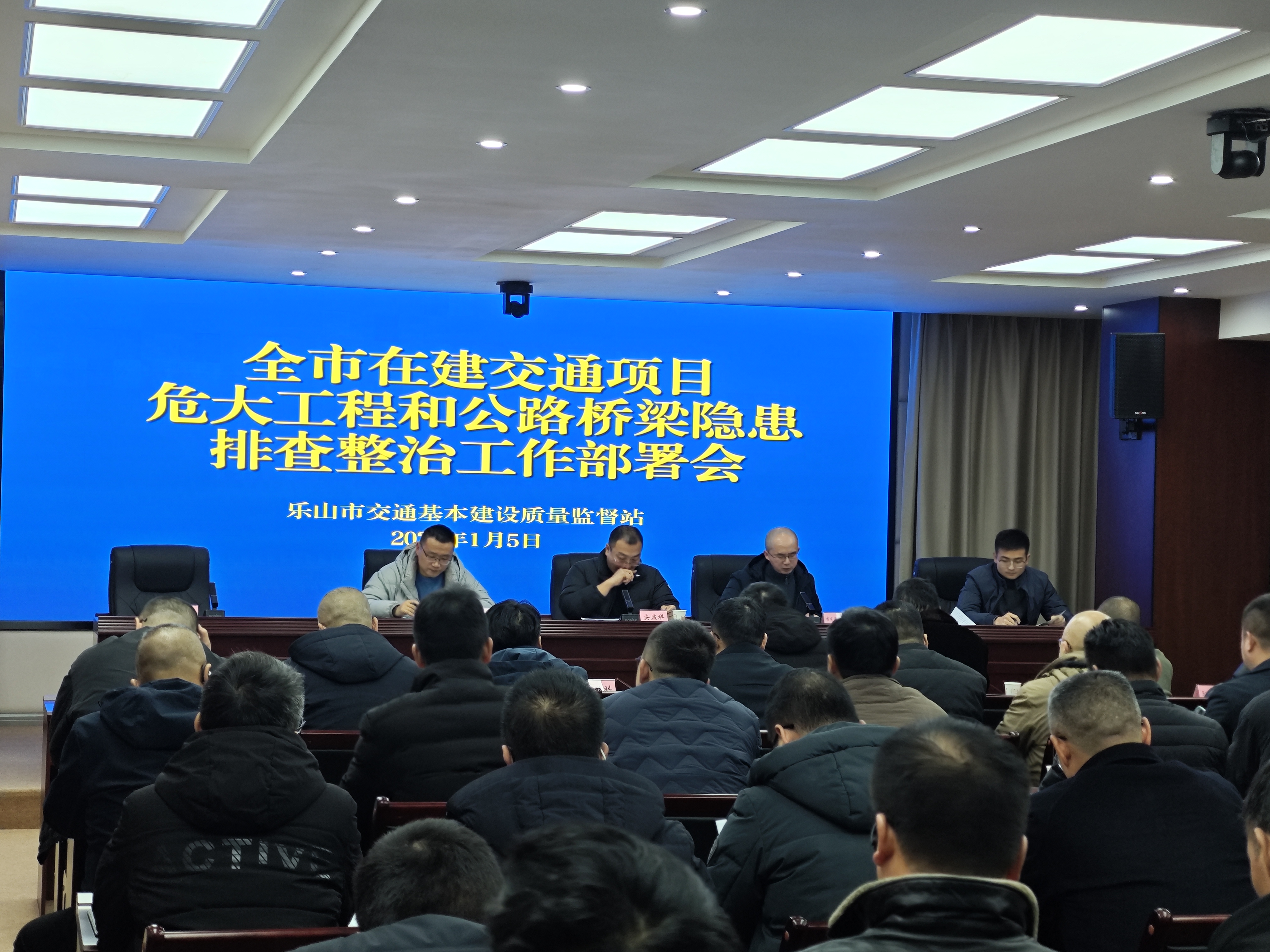 为扎实做好2025年度中央安全生产考核巡查发现问题隐患反馈片涉及公路水路交通建设领域突出问题隐患整治工作,落实好《中央安全生产考核巡查发现问题隐患即知即改工作方案》,结合危大工程管理和公路桥梁隐患排查实际,乐山市交通基本建设质量监督站2026年1月5日,会同市交通运输局安全科,组织市高管办、航电办、公路办以及全市在建高速公路、重点水运工程、国省干线共计13个项目的建设单位项目负责人、监理单位总监、施工单位项目经理、技术负责人等共计65人,在市交通运输局二楼会议室成功召开了全市在建重点交通项目危大工程和公路桥梁隐患排查整治工作专题部署会。