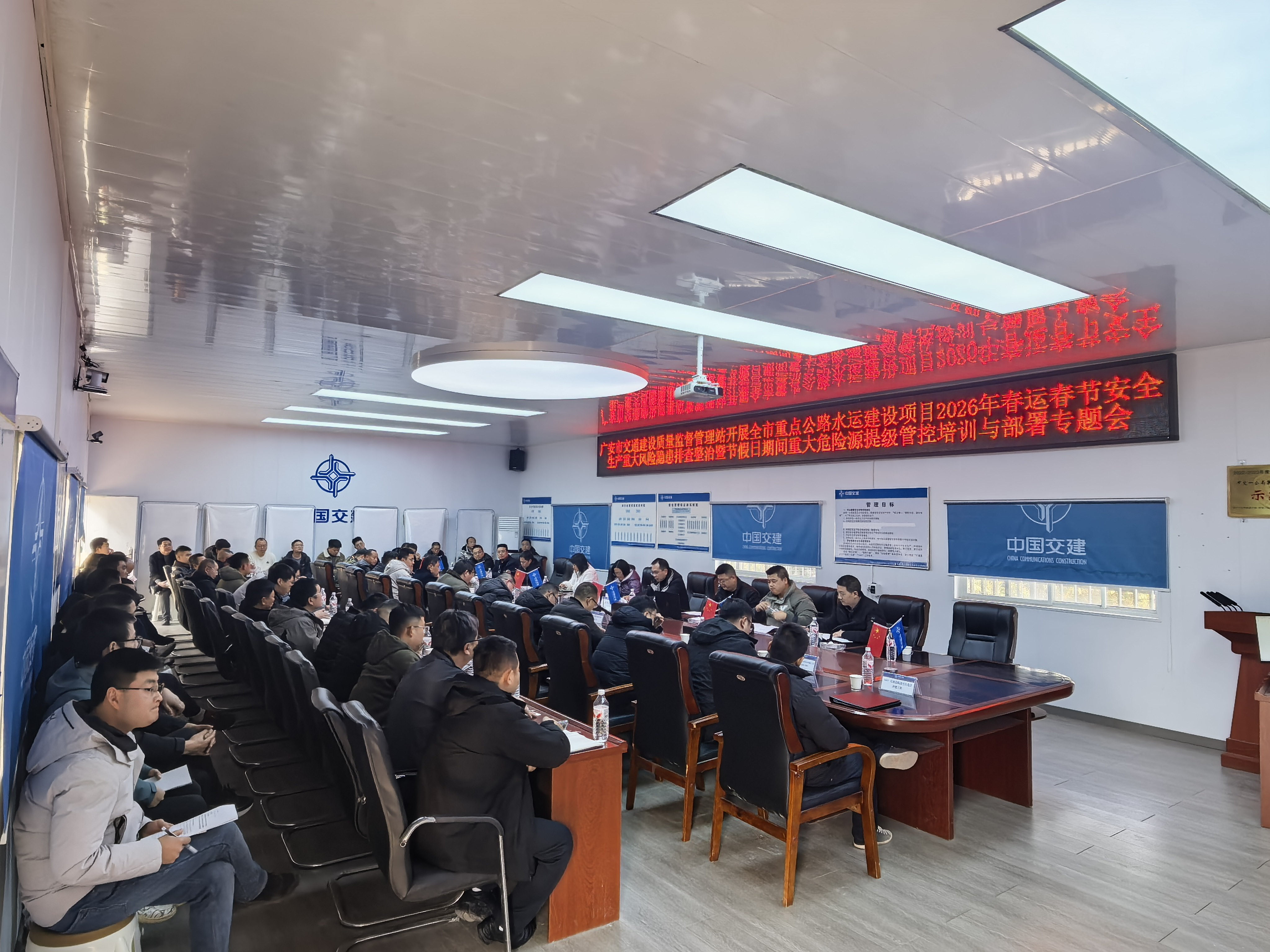 会议首先由安全环保室组织观看了《2025年度中央安全生产考核巡查发现问题隐患反馈片(工程建设领域相关内容)》和《全市交通运输安全生产典型案例和今冬明春市级督导检查发现问题隐患曝光》专题片,针对《省厅关于印发2026年春运春节交通运输安全生产重大风险隐患排查整治工作方案的通知》《2026年春运春节交通运输安全生产重大风险隐患排查指南》《省厅关于印发重大危险源节假日提级管控和日常监管工作的通知》及《企业每日实施提级管控情况-操作手册》《市局关于转发四川省交通运输厅安全生产警示约谈和挂牌督办办法的通知》《工程建设领域风险隐患排查及节假日提级管控》和《〈公路水运工程生产安全重大事故隐患判定标准〉宣传图册》以及《交通运输部发布2025年上半年工程建设领域典型事故案例与防范措施》等文件进行了传达学习与专题培训,并对2026年春运春节安全生产重大风险隐患排查整治工作和节假日期间重大危险源提级管控等两项重点工作进行了详细安排。然后,国道350线广武路项目和华蓥山隧道及引道工程项目建设单位负责人分别就节假日重大危险源提级管控情况和安全生产重大风险隐患排查整治工作进行了交流发言;最后,质监站负责人就切实增强做好行业内部以及各重点项目安全生产工作的责任感和紧迫感,树牢底线思维、极限思维,统筹做好安全和发展,把项目安全生产工作抓细抓实提出以下五个方面要求:一是以案为鉴,做到警钟长鸣。二是提高认识,压紧压实安全责任。三是全力以赴,确保“两项行动”取得实效。四是防患未然,常态化做好应急处突准备。五是多措并举,切实筑牢项目生产安全防线。