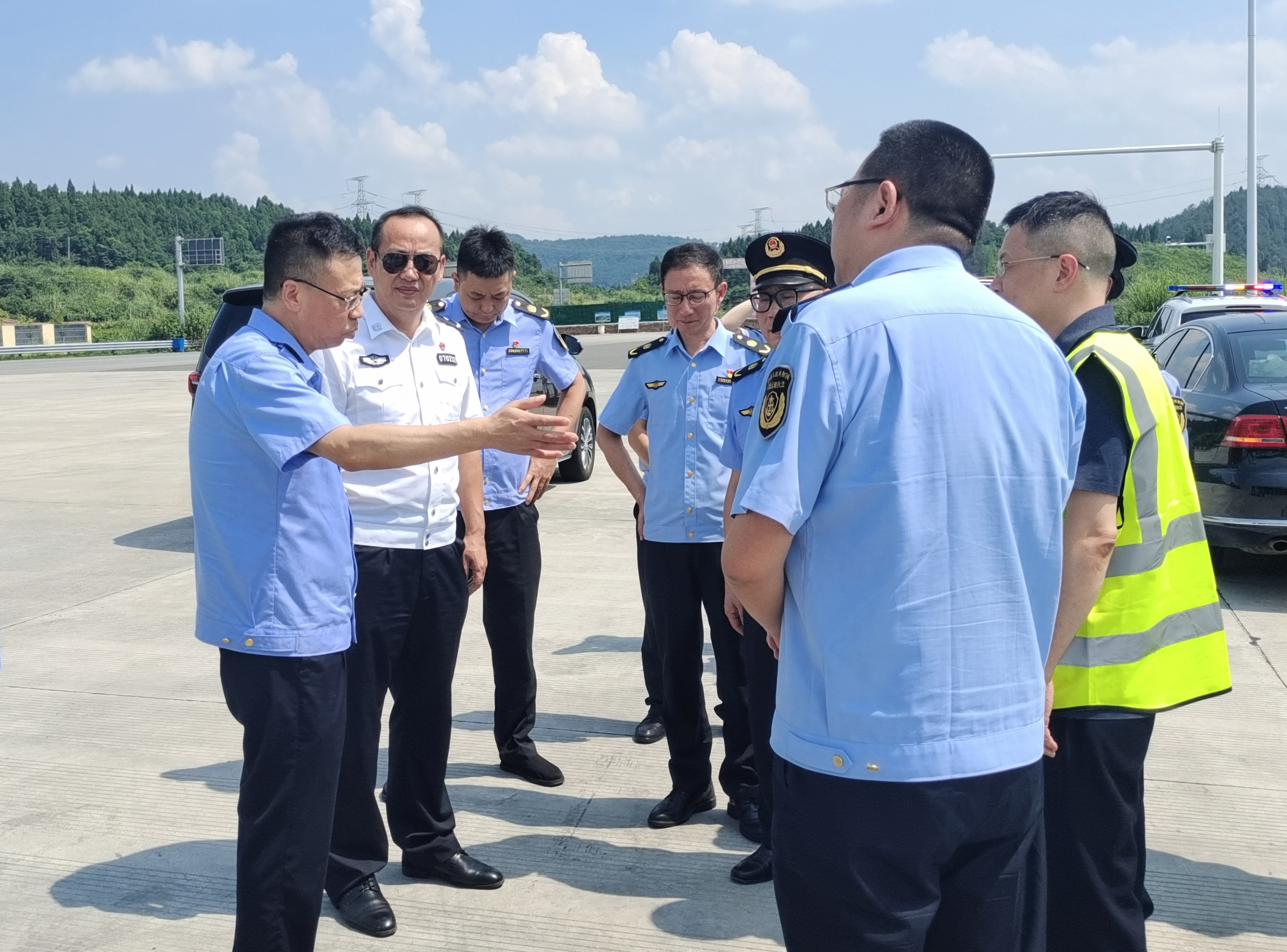 8月19日,省交通执法总队(厅高管局)党委副书记、副总队长(副局长)邓洪率队赴SA3成都都市圈环线高速公路德简段德阳东收费站开展保通保畅专题调研,调研组通过实地察看和听取汇报,详细了解了支队、大队在成绵高速公路收费到期转段后的保通保畅准备工作,要求:一要提高政治站位,深刻认识转段后路网畅通稳定运行和收费秩序良好的重要性,保障成绵高速收费到期转段切换平稳;二要做好形势预判,提前做好人员、救援设备和应急物资的准备,根据现实通行状况,制定切实可行的保通保畅预案;三要发挥好“一路三方”联勤联动机制,落实联合调度,强化流量管控,加强信息发布,共同维护转段后高速公路的安全畅通运行。
