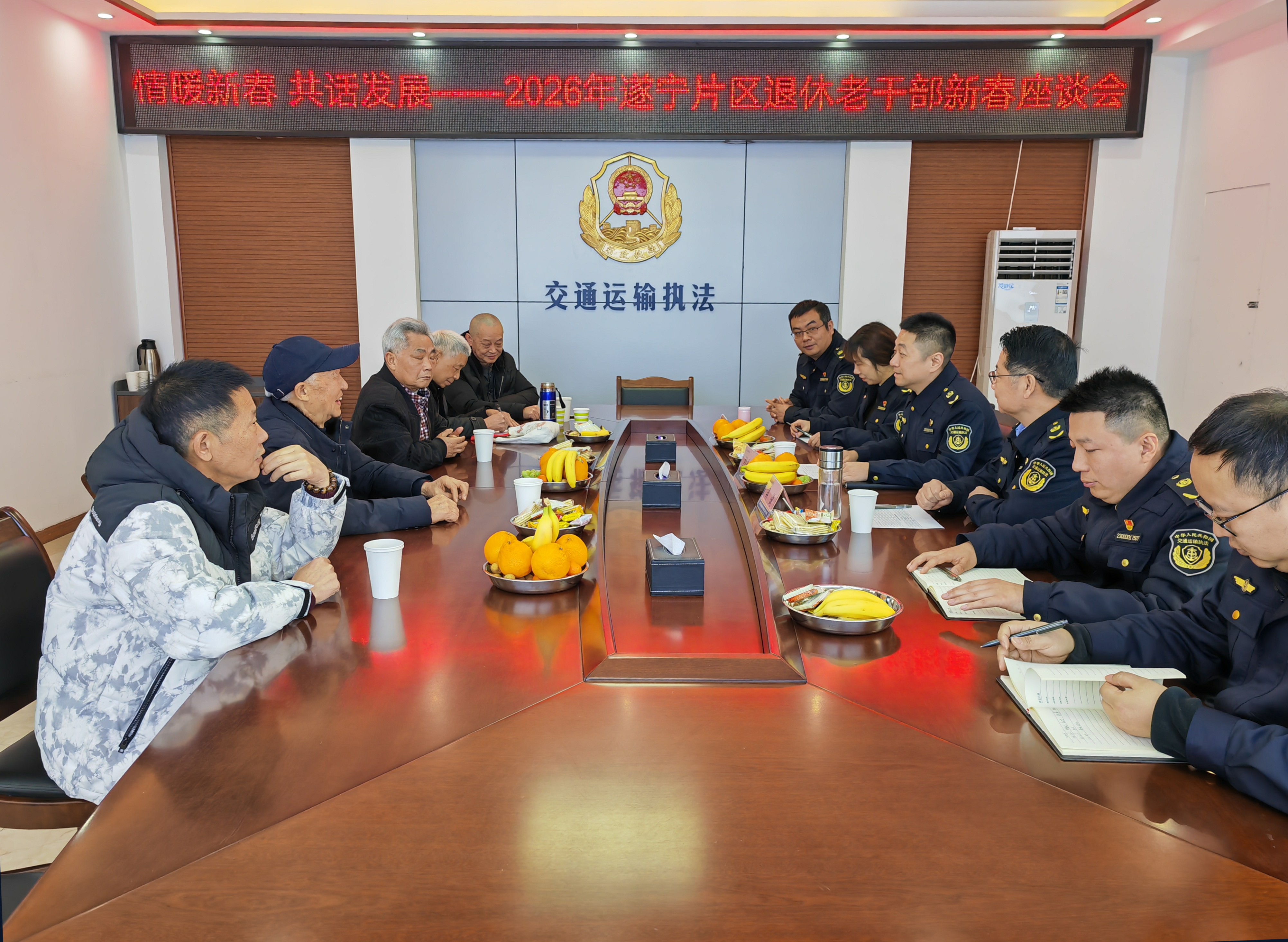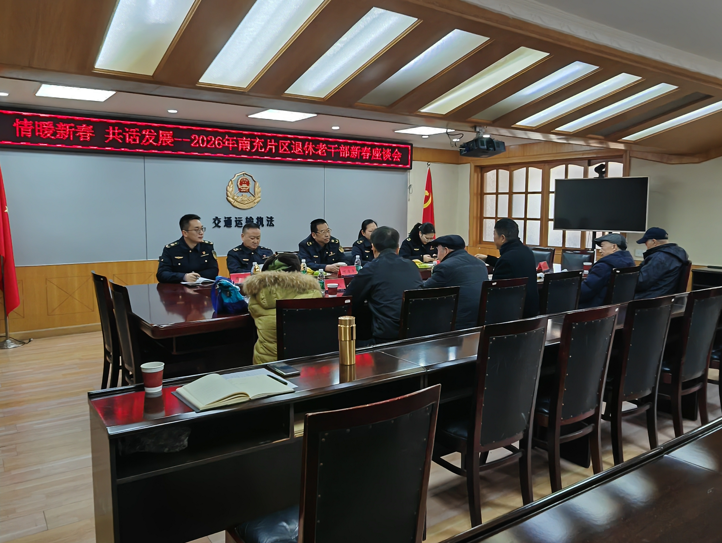 2月13日,交通执法三支队领导班子分片区到遂宁、南充看望慰问退休老干部,并召开“情暖新春 共话发展”退休老干部新春座谈会,支队党委书记、支队长刘翔宇代表支队党委向老干部致以新春祝福,通报2025年四川省高速公路发展概况及交通执法工作成效,衷心感谢老干部为交通执法事业奠定的坚实基础、作出的重要贡献,并认真听取大家对队伍发展和执法工作的意见建议。与会老干部深情回顾奋斗历程,畅谈队伍发展新变化、新风貌,对支队工作成效给予充分肯定,对组织的关心关怀表示衷心感谢。大家纷纷表示,将坚持退休不褪色、离岗不离党,继续发挥余热、建言献策,一如既往关心支持高速公路交通执法事业发展。下一步,支队将持续用心用情做好老干部服务保障工作:一是铭记老干部辛勤付出,充分吸纳宝贵意见;二是严格落实各项待遇政策,扎实做好老干部健康体检、困难帮扶、医保咨询等服务保障;三是丰富党内组织生活与文化文体活动,积极邀请老干部发挥余热,共同当好四川高速公路高质量发展的见证者、参与者和推动者。