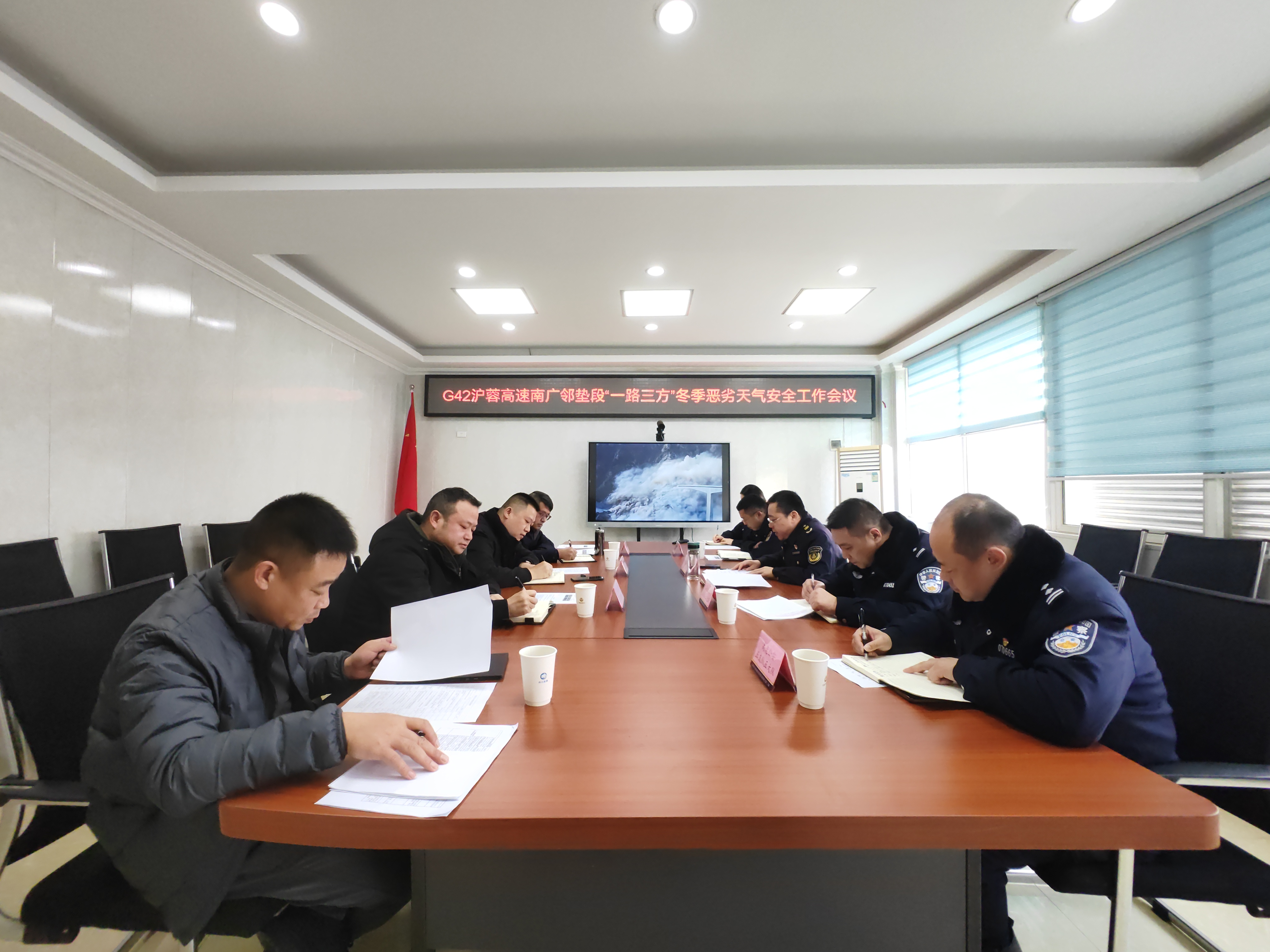 12月25日,交通执法七支队二大队、一大队联合高速公安、营运公司召开G42沪蓉高速南广邻垫段“一路三方”冬季安全生产工作会议。一是组织学习将于2026年1月1日正式实施的《道路交通标志和标线 第 9 部分:交通事故管理区》国家标准,要求各方人员熟练掌握并执行新规内容;二是通报事故多发路段防范能力提升、交通安全集中整治两项专项活动的最新进展,针对个别未完成任务协商制定推进举措;三是从隐患排查、应急准备、管控措施、值班值守等方面,全面部署冬季恶劣天气应对工作;四是提前谋划元旦等重大节假日期间道路保通保畅工作,要求在节假日期间密切监测车流量变化,为优化后期应急方案、科学配置管控力量提供精准数据支撑。
