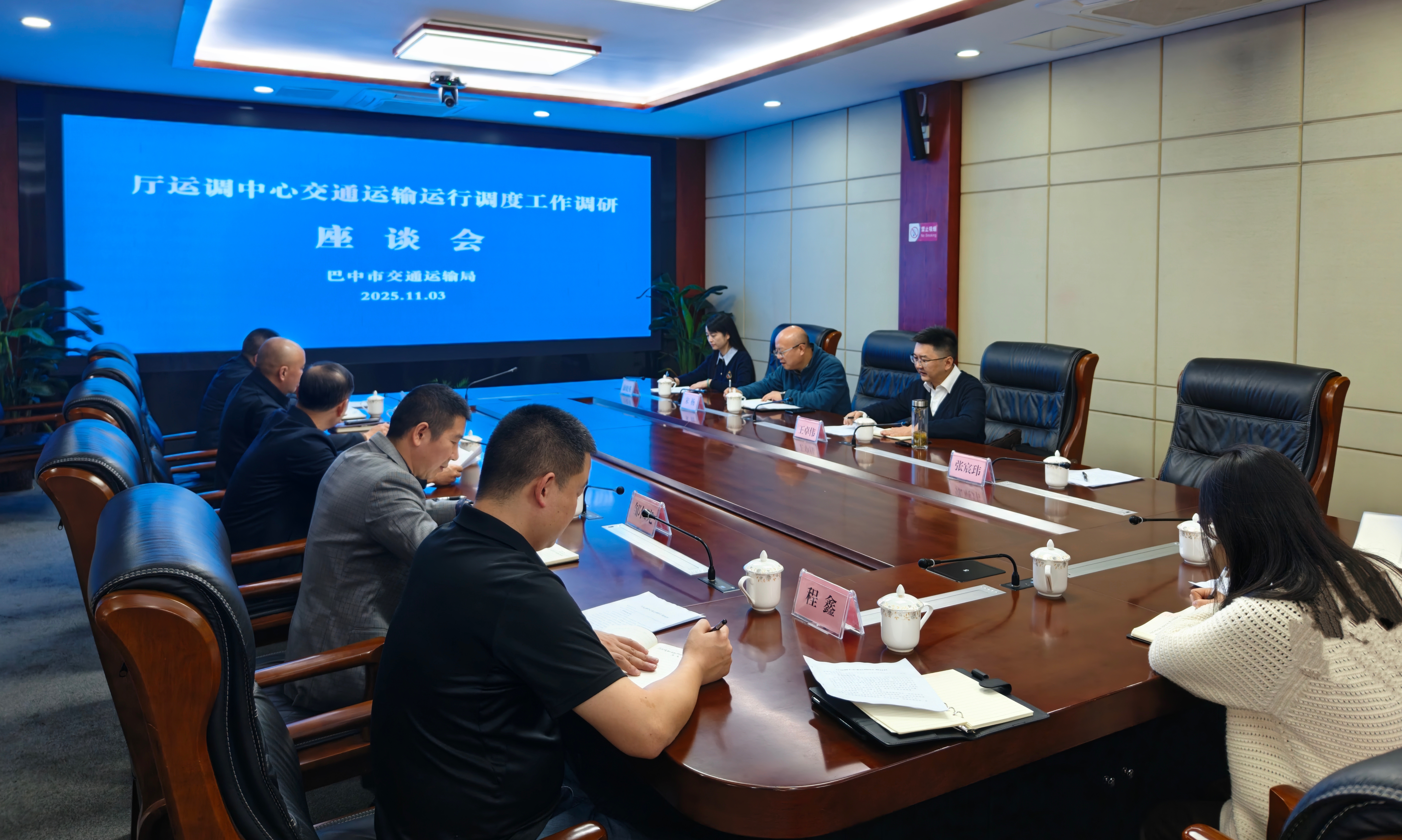 11月3日,运调中心王卓伟主任一行到巴中调研路网运行调度工作,市交通运输局党组成员、副局长王湘云,市交通应急保障指挥中心相关负责人参加调研座谈。
