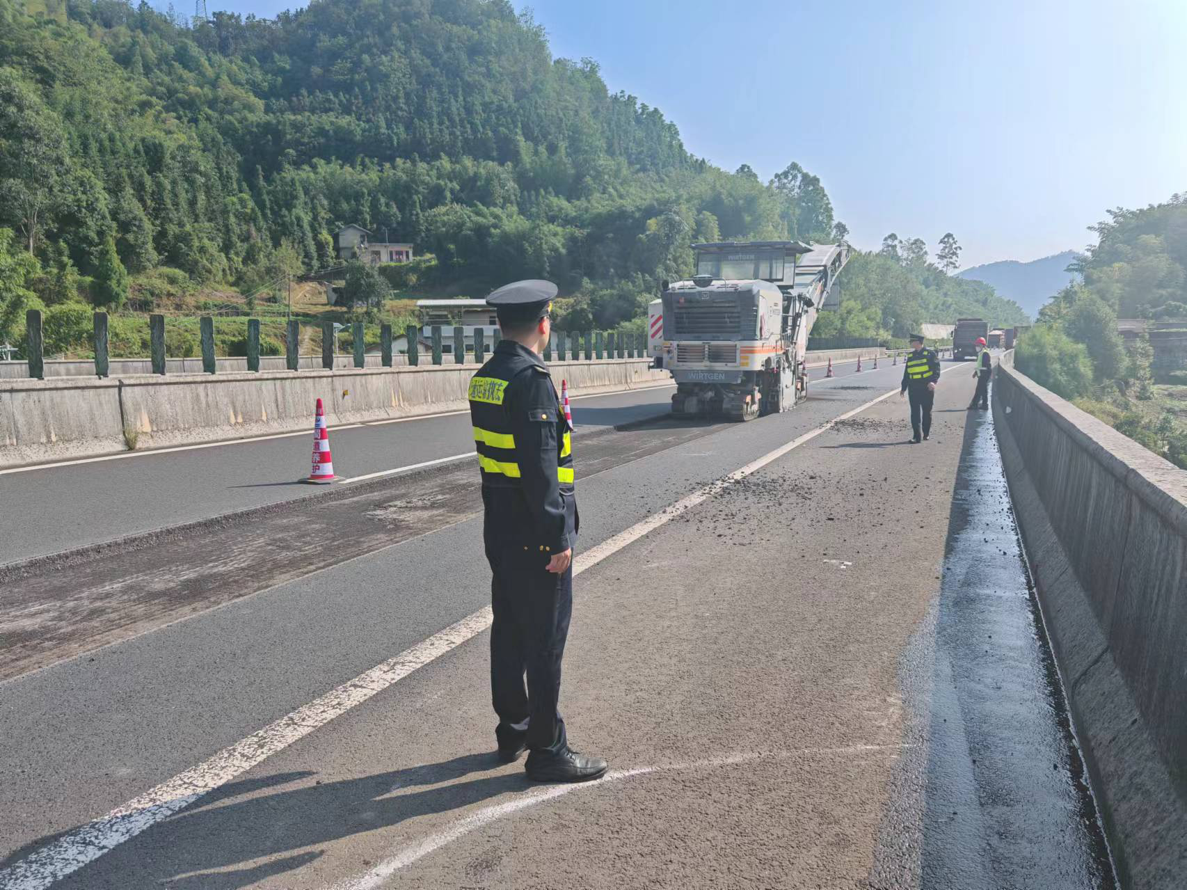 1月21日,省交通执法总队第一支队十二大队深入S41遂宜毕高速公路宜宾段开展冬季养护施工监管工作,督促施工单位严格按照《四川省运营高速公路涉路及养护规范化施工指南》规范设置标志标牌,加强施工现场监督,正确穿戴反光背心和佩戴安全帽,提高安全防护意识;二是针对冬季施工特点,合理安排施工作业时间;三是做好施工作业人员安全教育培训和业务培训,并制定科学合理且具有针对性的应急预案,切实做到安全规范的施工,保障高速公路安全畅通。